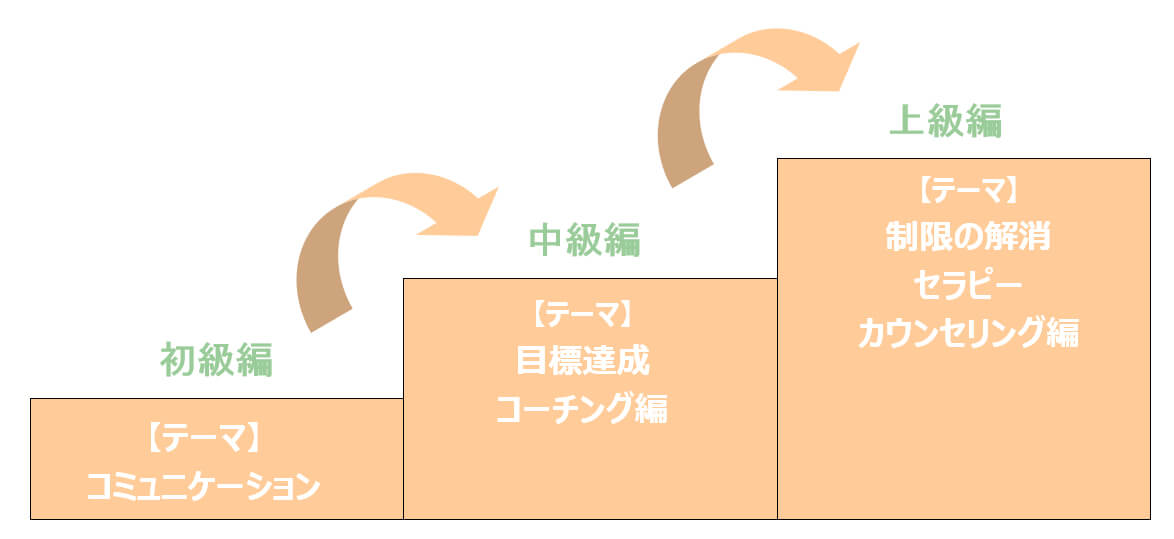NLPを体系的に、段階的に学び、NLPの活用方法も自ら気づき、仕事やプラベートなどの日常で活用していくことを最も大切にして行っていきます。また、学びを3ステップにわけているので、どこまで学ぶかをニーズや時間・予算などで選ぶことができます。
